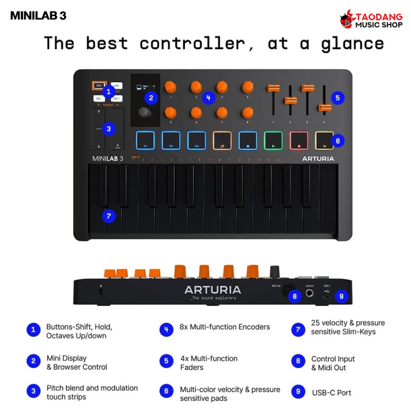 - Velocity & pressure sensitive pads with RGB backlighting x 8