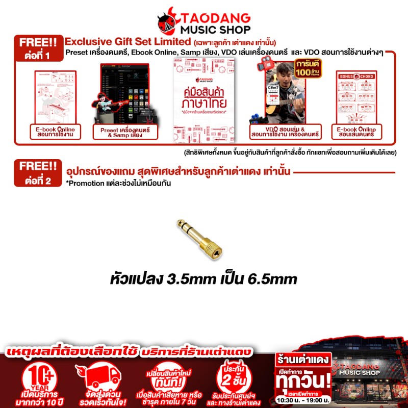 ► ตัวเชื่อมต่อ : Snap-on1/8”(3.5มม.) to 1/4”(6.3มม.) อแดปเตอร์