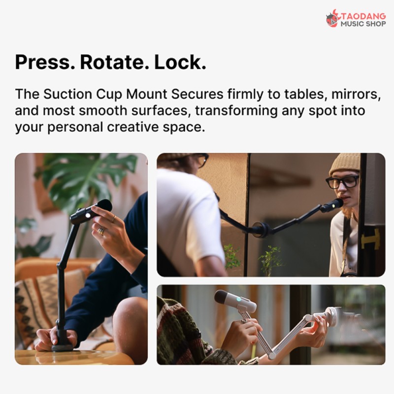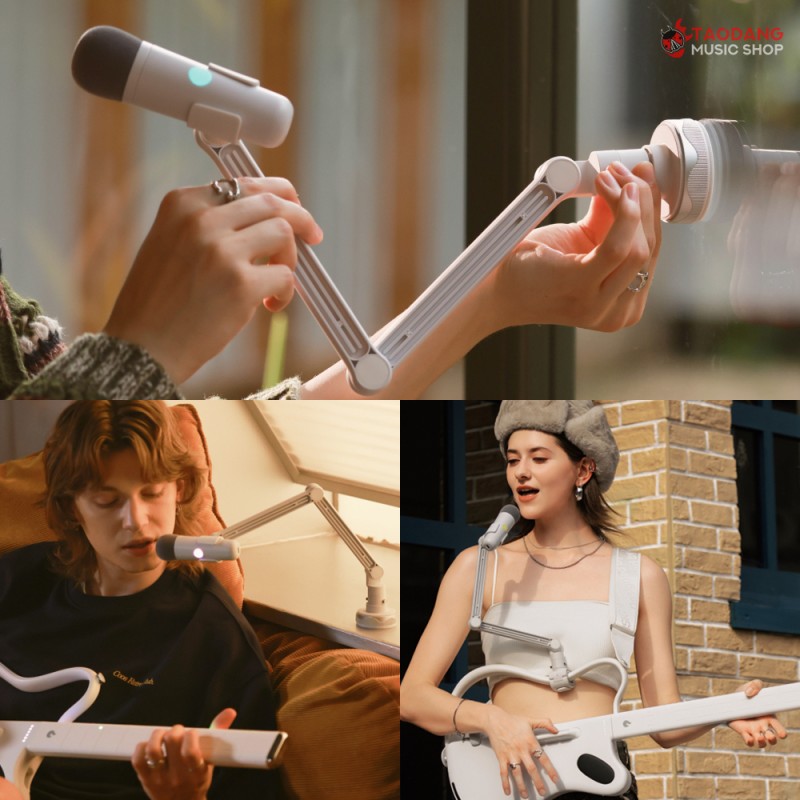 - มาพร้อมตัวยึดจับกับเครื่องดนตรี ติดตั้งบริเวณใกล้กับมือที่จับเฟรตกีต้าร์ ช่วยให้คุณสามารถเดินเล่นและร้องเพลงไปพร้อมกันได้อย่างอิสระ โดยไม่ง้อขาตั้งไมค์ตั้งพื้นแบบเดิมๆ