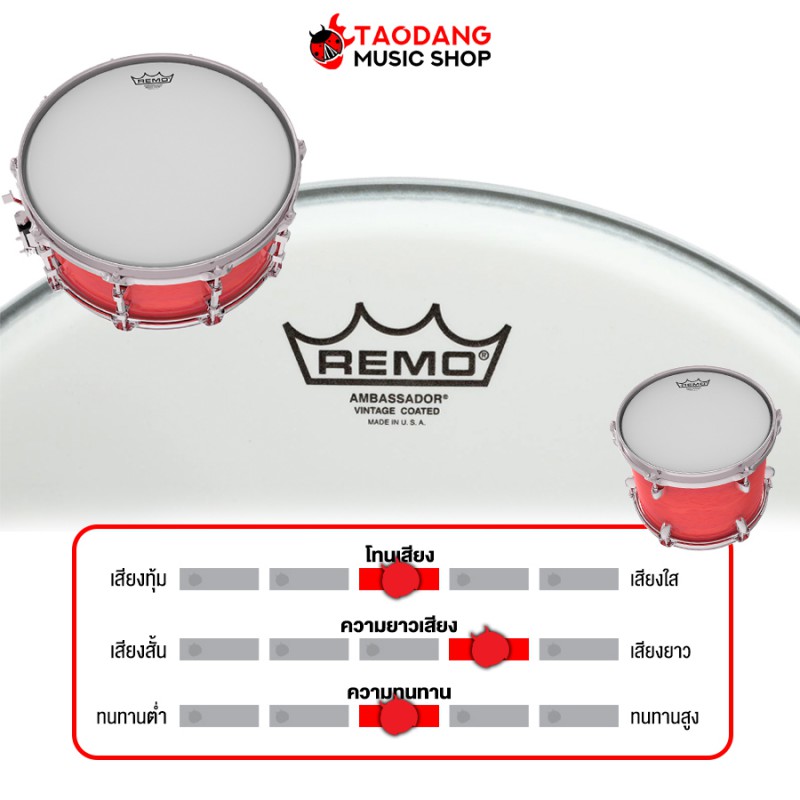 หนังกลอง Remo Vintage Ambassador Coated 15"