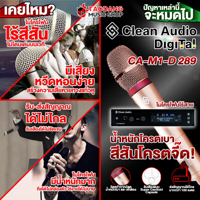 ไมค์โครโฟนไดนามิคไร้สาย CLEAN AUDIO-CA M1 D 289 ROSE GOLD
