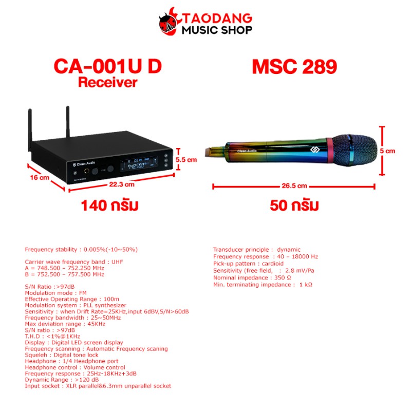 ไมค์โครโฟนไดนามิคไร้สาย CLEAN AUDIO-CA M1 D 289 TITANIUM
