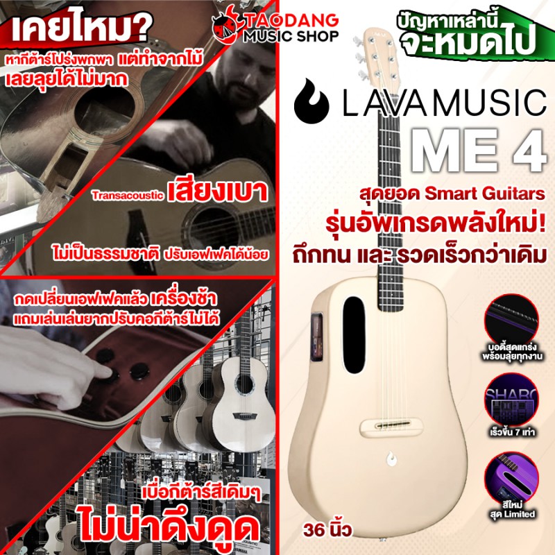 กีต้าร์โปร่งไฟฟ้า Lava ME 4 36" Space Bag สี Soft Gold