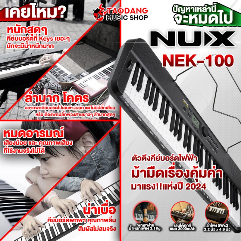 - แบตเตอรี่ในตัวทำให้สามารถพกพาออกไปเล่นข้างนอกได้สะดวกและยังยาวนานถึง 10 ชั่วโมง และยังสามารถชาร์จขณะเล่นได้ด้วย แถมคีย์บอร์ดยังมีน้ำหนักเบาทำให้พกพาสะดวก