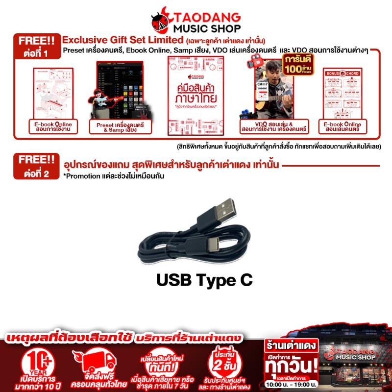 - เครื่องดนตรี 6.35 มม. จำนวน 1 ช่อง