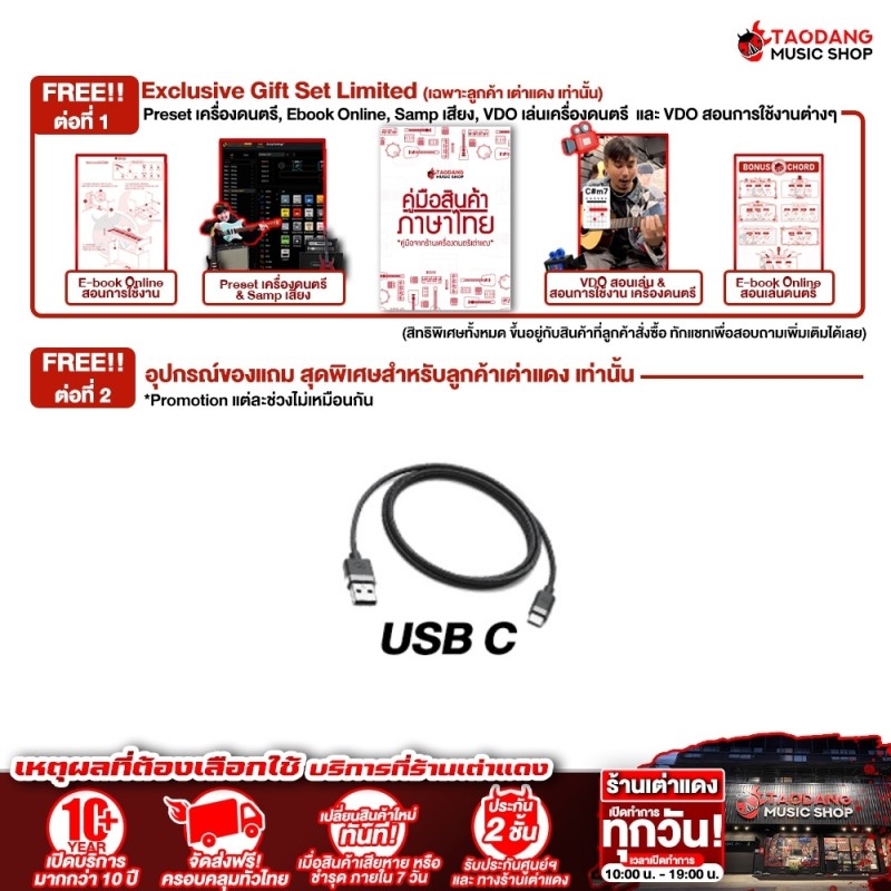 - MIDI (อิน/เอาท์) XLR 5 พิน จำนวน 2 ช่อง