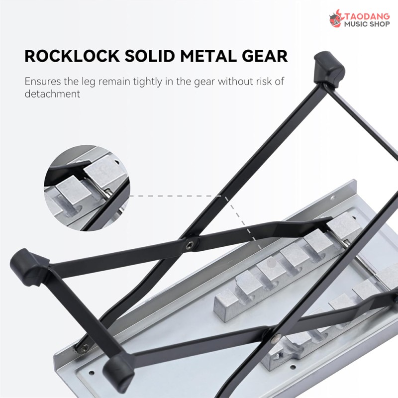 - ระบบเฟืองโลหะ ที่รับน้ำหนักได้ดีเยี่ยมและทนทานกว่าที่วางเท้าทั่วไปหลายเท่า โครงสร้างแบบ RockLock ช่วยล็อคขาตั้งกับเฟืองไว้แน่นหนา หมดกังวลเรื่องขาหลุดขณะเคลื่อนย้าย เพิ่มความปลอดภัย