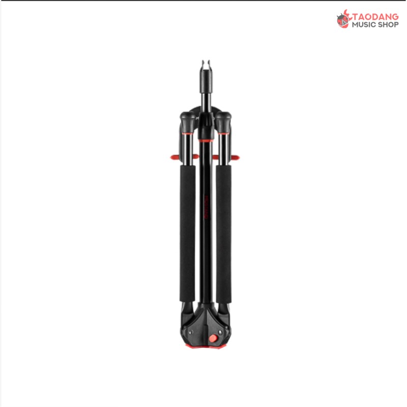- หัวจับทำจากยางกันลื่นที่แข็งแรง มาพร้อม สายรัดนิรภัย และขาตั้งหุ้มวัสดุนุ่ม ช่วยปกป้องตัวกีต้าร์จากรอยขีดข่วนและการลื่นหลุด