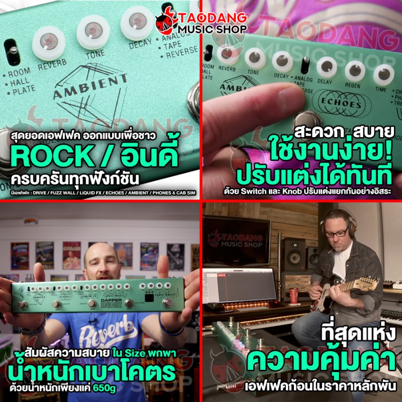 - มี 5 เอฟเฟค (Indie Drive, Fuzz Wall, Echoes, Ambient, Versatile Liquid FX)