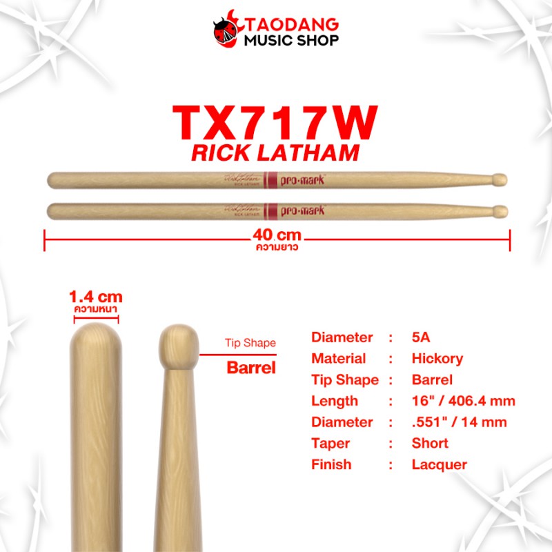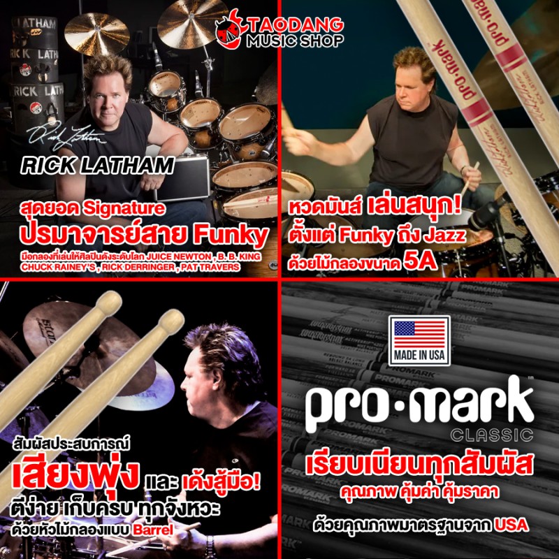 - หัวไม้กลองแบบ Barrel ให้เสียงที่กว้างและชัดเจน เหมาะสำหรับการเล่นสด