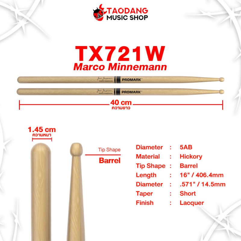 - The 721 was designed by Marco Minnemann. The 721 features a slightly larger diameter than a standard 5A and the long taper allows for control and precision.