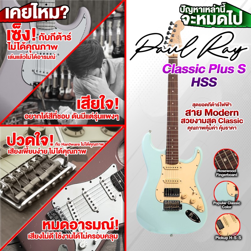 กีต้าร์ไฟฟ้า Paul Ray Classic Plus S HSS RW สี Sonic Blue
