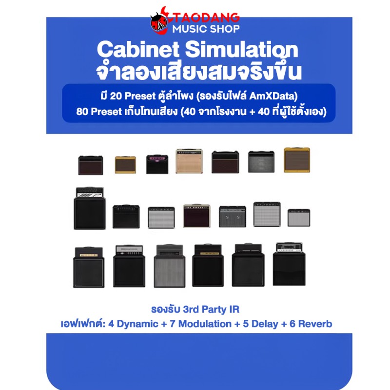 - 20 แอมป์ ซิมมูเลชั่น (15 กีต้าร์ไฟฟ้า, 5 เบส)
