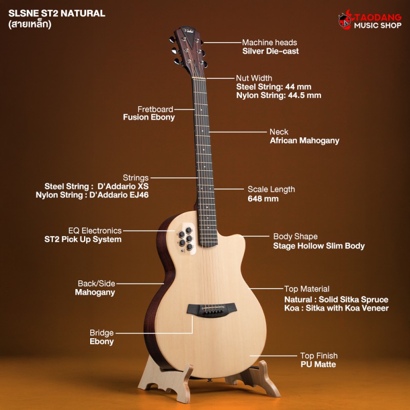 - SL-NKE ST2, SL-SKE ST2 : Solid Sitka Spruce with Koa Veneer
