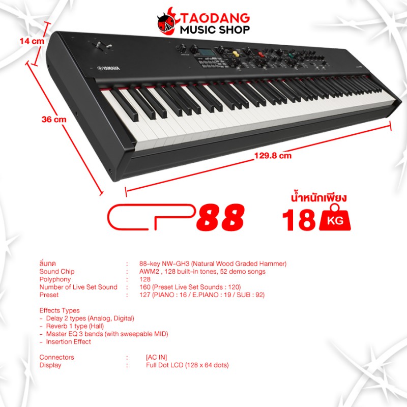 ► ลักษณะคีย์บอร์ด : แป้นคีย์แบบ Weighted, Graded Hammer